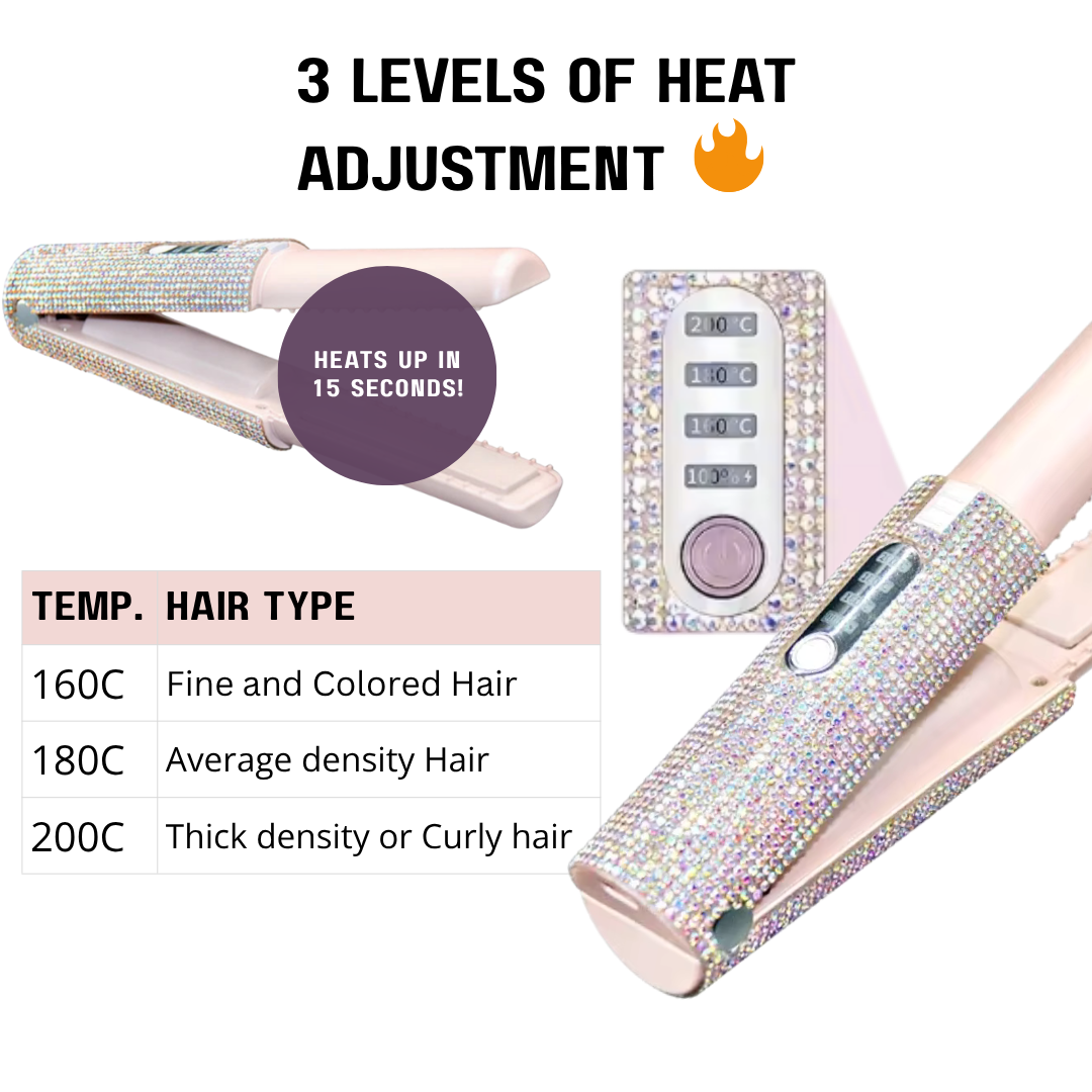 Meet the GlamWave Duo: a sleek 2-in-1 straightener and curler that goes where you go. Whether you're perfecting your look before work or touching up on the go, this cordless, USB-rechargeable styler delivers effortless results—no outlets required.
